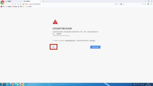 4.第一次访问时,如出现下图请点击高级-继续前往即可。