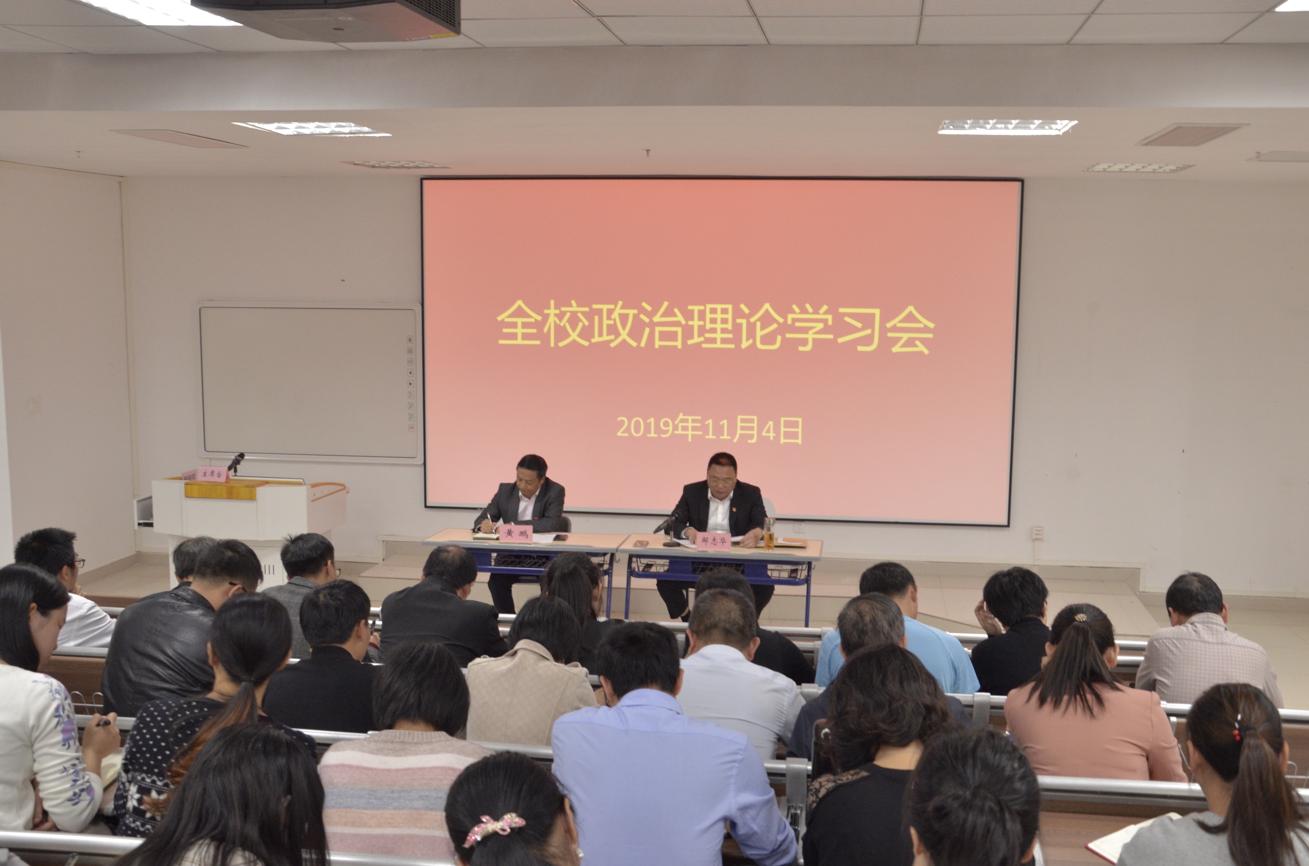 为深入贯彻落实党的十九届四中全会精神,激发全院教职工工作热情,11月4日下午,学院组织全体教职工在阳明楼110室学习党的十九届四中全会精神会议,学习以视频解读形式进行,学院党委书记邹志华出席会议并讲话,院长黄鹏主持会议。