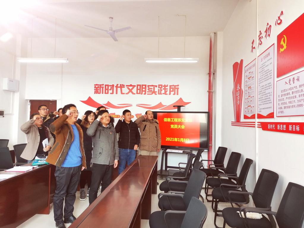 2021年1月8日下午,信息工程系党支部在应星楼415党员活动室召开了1月党员大会,会议围绕学习榜样精神 自觉践行共产党人价值观展开,支部书记吴辉生同志主持会议,支部全体党员参加。