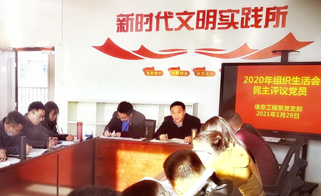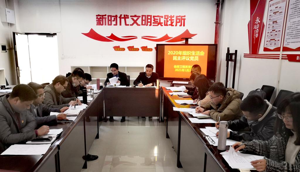 1月29日,信息工程系党支部在应星楼415党员活动室召开了2020年度组织生活会暨民主评议党员会议。党委副书记、院长黄鹏同志参加了本次大会并做点评,支部全体党员、入党积极分子参加了会议,会议由支部书记吴辉生主持。