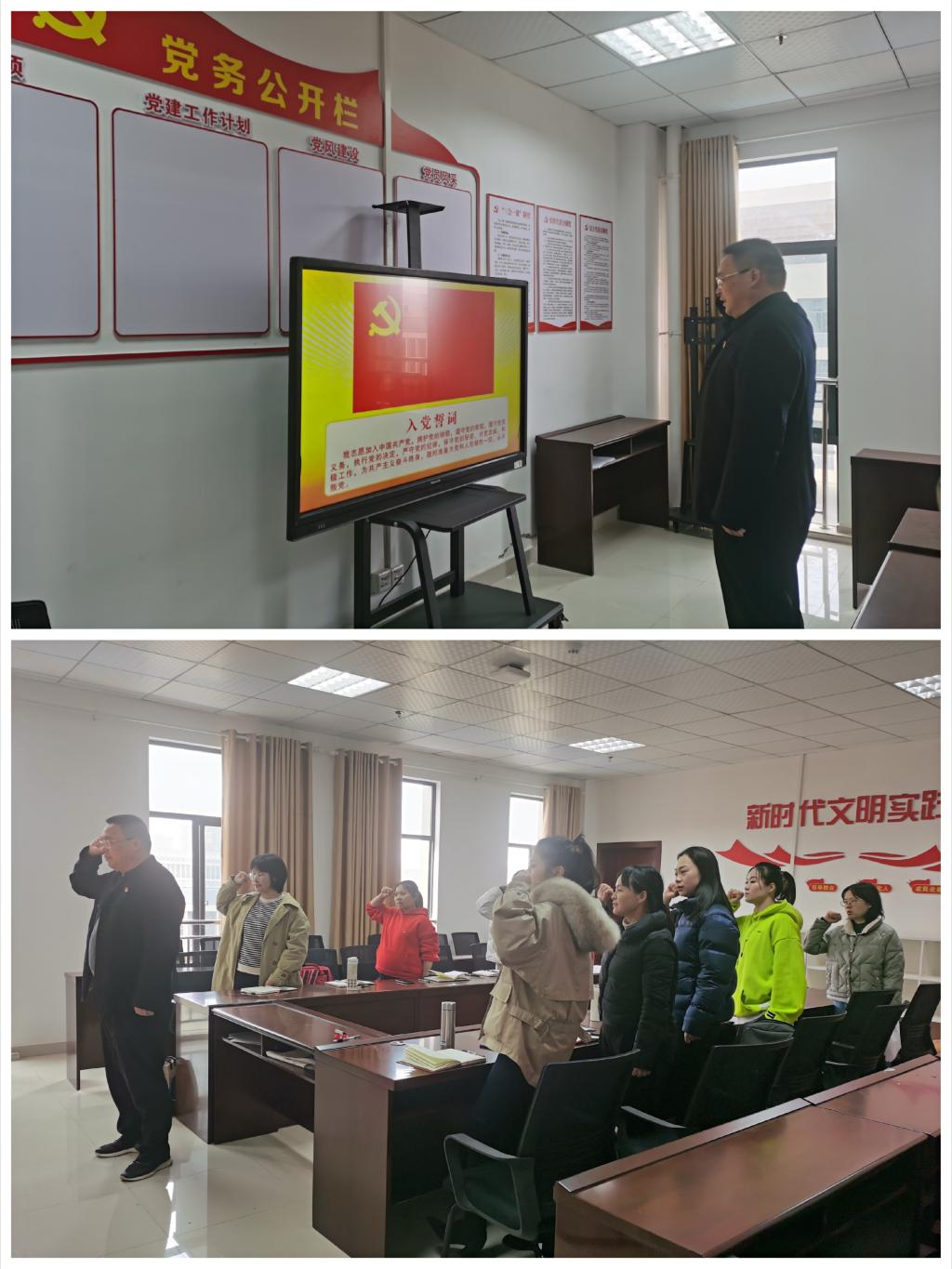 本次会议分为二个阶段,第一阶段由政治生日党员邹志华领誓,重温入党誓词。
