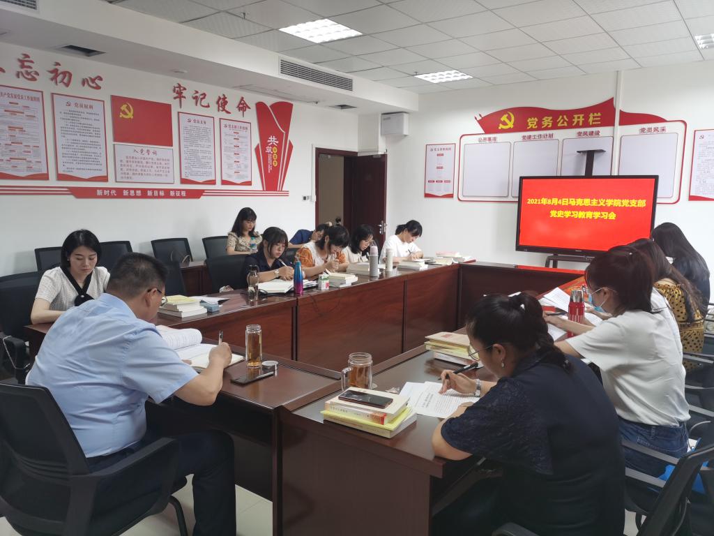 8月4日上午,马克思主义学院党支部在阳明楼510会议室召开党史学习教育学习会,会议紧紧围绕“学党史、悟思想、办实事、开新局”的主题认真开展学习,会议由党支部书记宋华主持,邀请非党员黄黎谊、张惟杰列席会议。