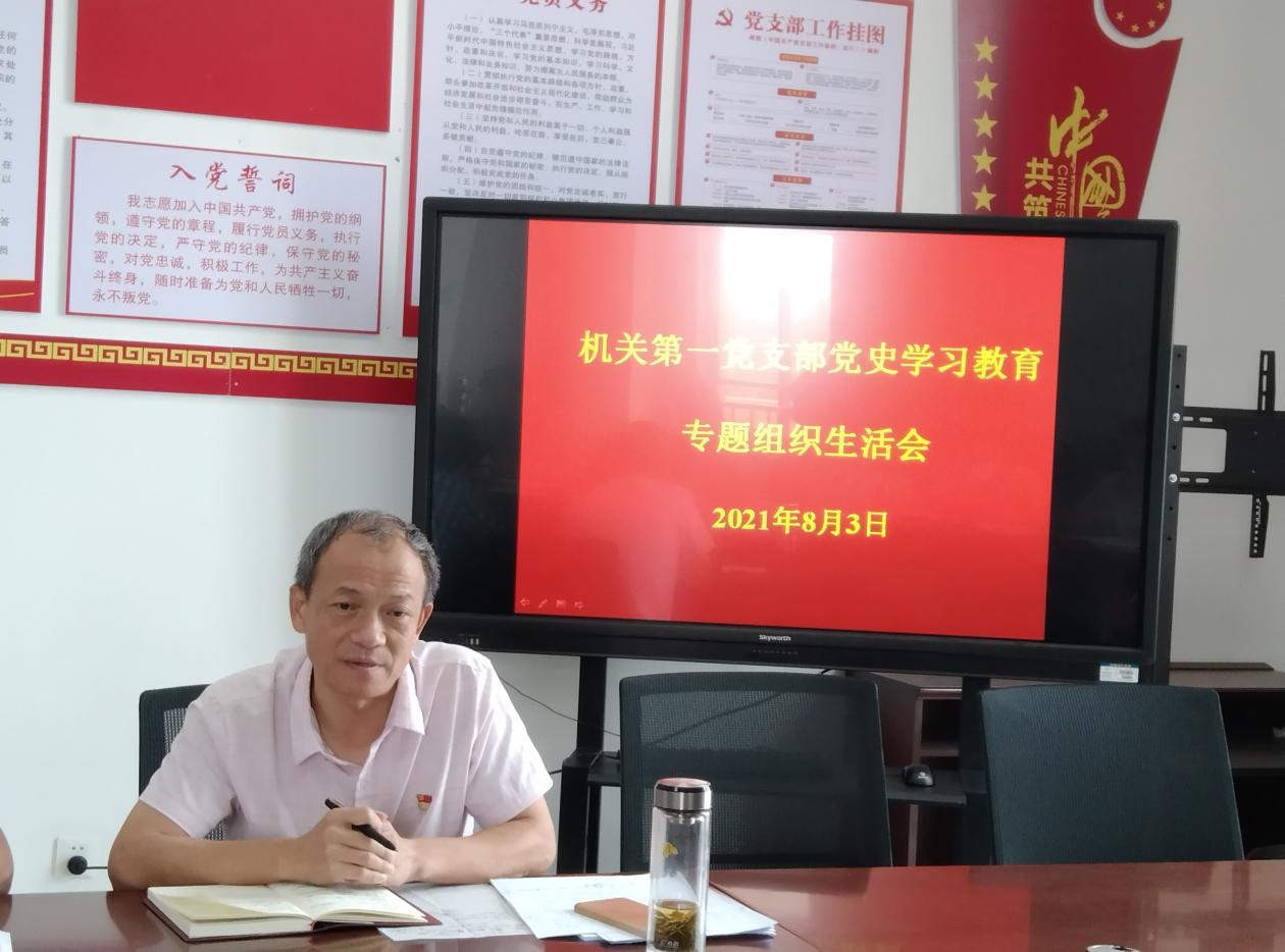 8月3日上午,机关第一党支部在行知楼801召开了党史学习教育专题组织生活会,挂点联系领导、学院纪委书记赖昭忠到会指导并讲话,会议由支部书记舒宽宏主持,支部全体党员参加了会议。
