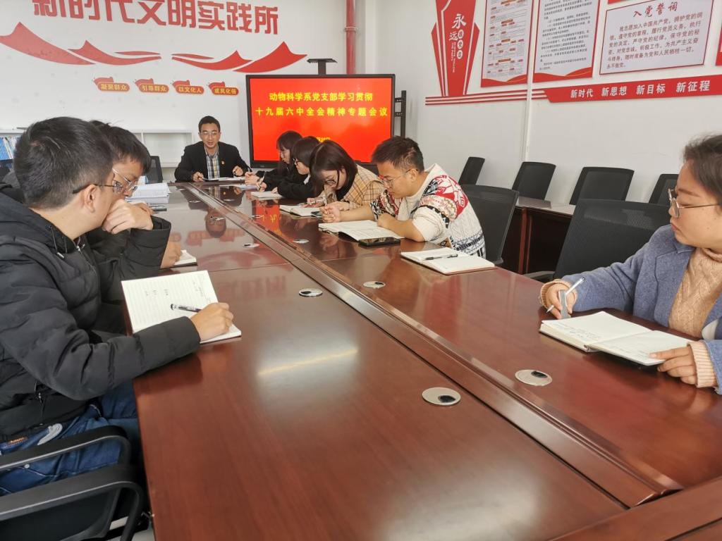 为学习贯彻党的十九届六中全会精神,深刻领会全会精神实质,11月25日下午,动物科学系党支部在应星楼415党员活动室召开了党的十九届六中全会精神专题学习会。会议由支部书记吴辉生同志主持,支部全体党员、动科系全体专职教师参加。