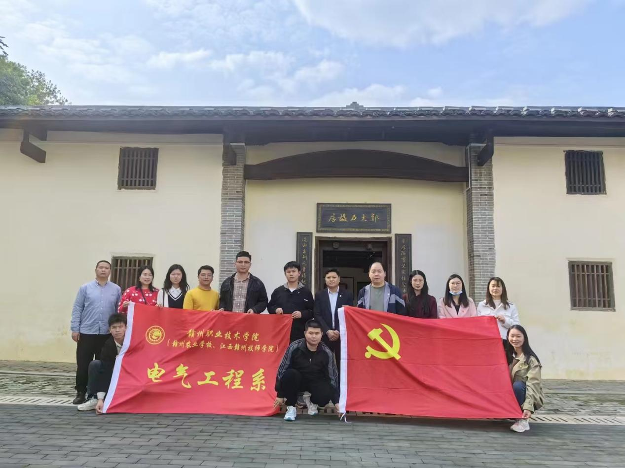为进一步践行实事求是和调查研究的精神,充分发挥共产党员的先锋模范作用。4月7日,电气工程系党支部全体党员、部分学生入党积极分子在党支部书记左伟平的带领下前往赣州经开区开展了“参观红色教育基地 实事求是练真本领”主题党日活动,全体党员重温入党誓词,赓续红色精神,缅怀革命先烈。