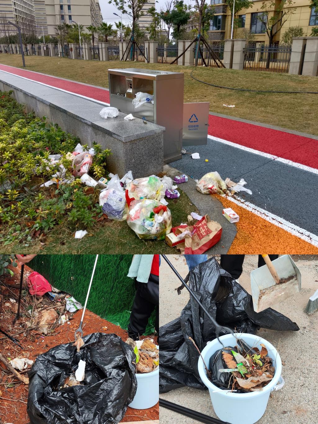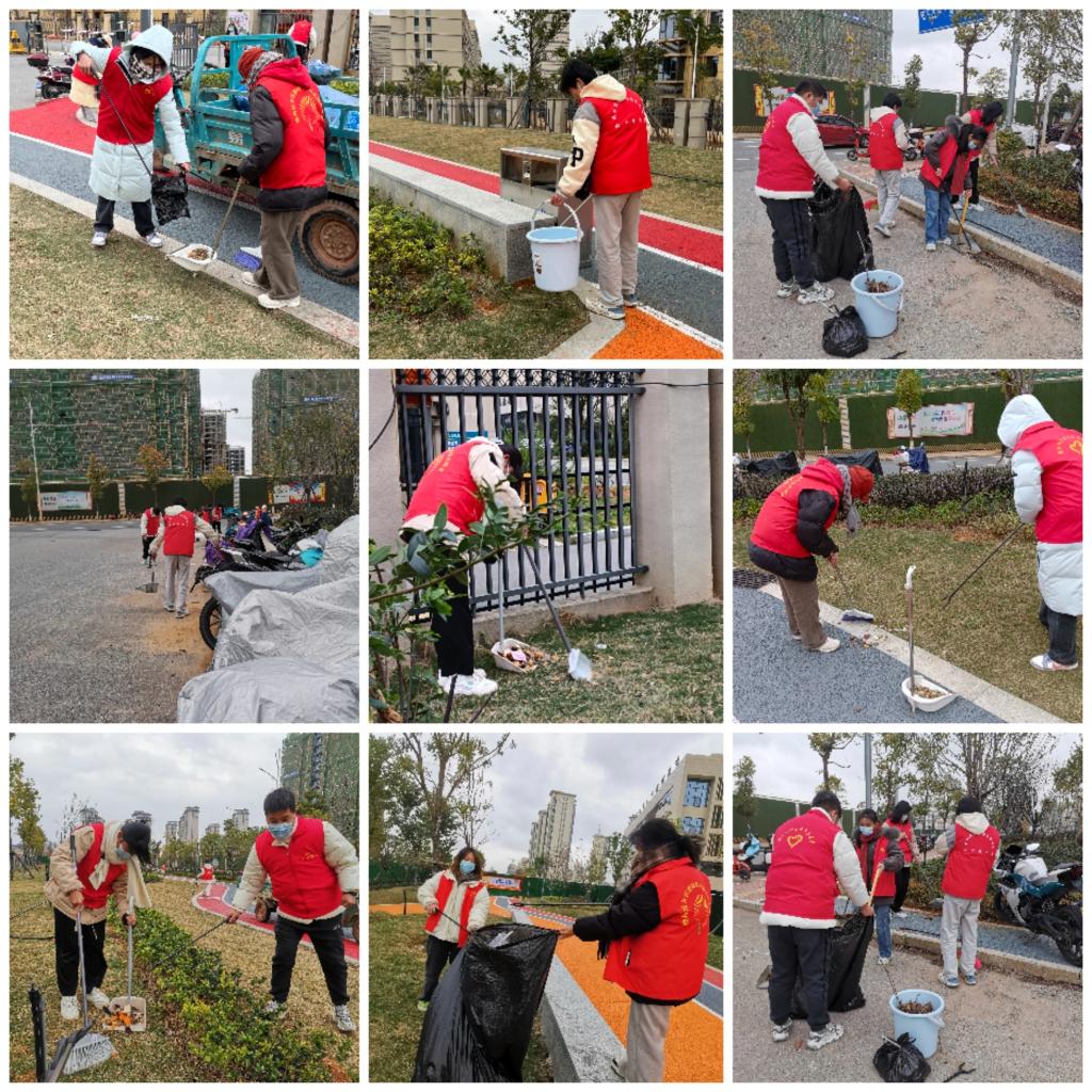 经过两个小时的认真打扫,唐章路小游园的环境焕然一新。