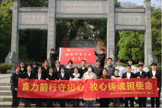 春风拂翠柏,哀思寄忠魂。在清明节即将来临之际,4月2日上午,动物科学学院党总支联合团总支,组织教工党支部、学工党支部党员师生代表、入党积极分子代表及优秀团员代表前往赣州市烈士陵园开展“畜力前行守初心,牧心铸魂担使命”清明主题祭扫活动。通过沉浸式红色教育,将“畜力牧心”党建品牌深度融入思政教育,引导青年师生从英烈精神中汲取奋进力量。