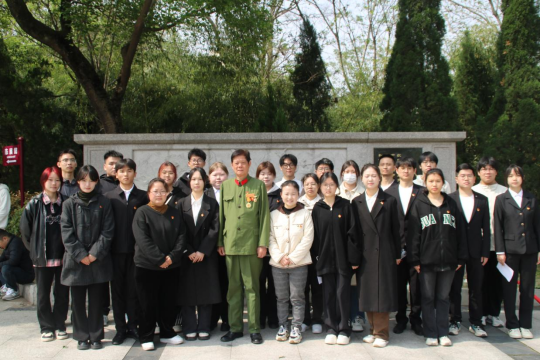 祭扫仪式后,师生们有幸遇到了一位前来缅怀战友的退伍老兵。大家怀着崇敬的心情围拢过去,与老兵爷爷亲切合影。经过了解,老兵爷爷名叫李健,曾参加过对越自卫反击战,也是一名中共党员。动物科学学院的师生们仔细聆听着老兵爷爷讲述他和他战友在对越自卫反击战中的战斗经历,那些炮火纷飞的岁月,在老兵爷爷质朴的言语中鲜活呈现。他饱含深情地回忆着战友们为了国家和人民无畏冲锋的英勇事迹以及他在过去的几十年里如何跨越六个省二十二个县寻找连队牺牲的十一位烈士家属并替战友尽孝的故事。李爷爷用坚定的语气叮嘱我们“要珍惜现在的和平生活啊,孩子们!”他边说着,眼神不由地望着远处连绵的群山,仿佛穿透岁月看见了当年的战友,“我们那代人把该打的仗都打了,你们现在要替我们好好活,活出个盛世模样!”。