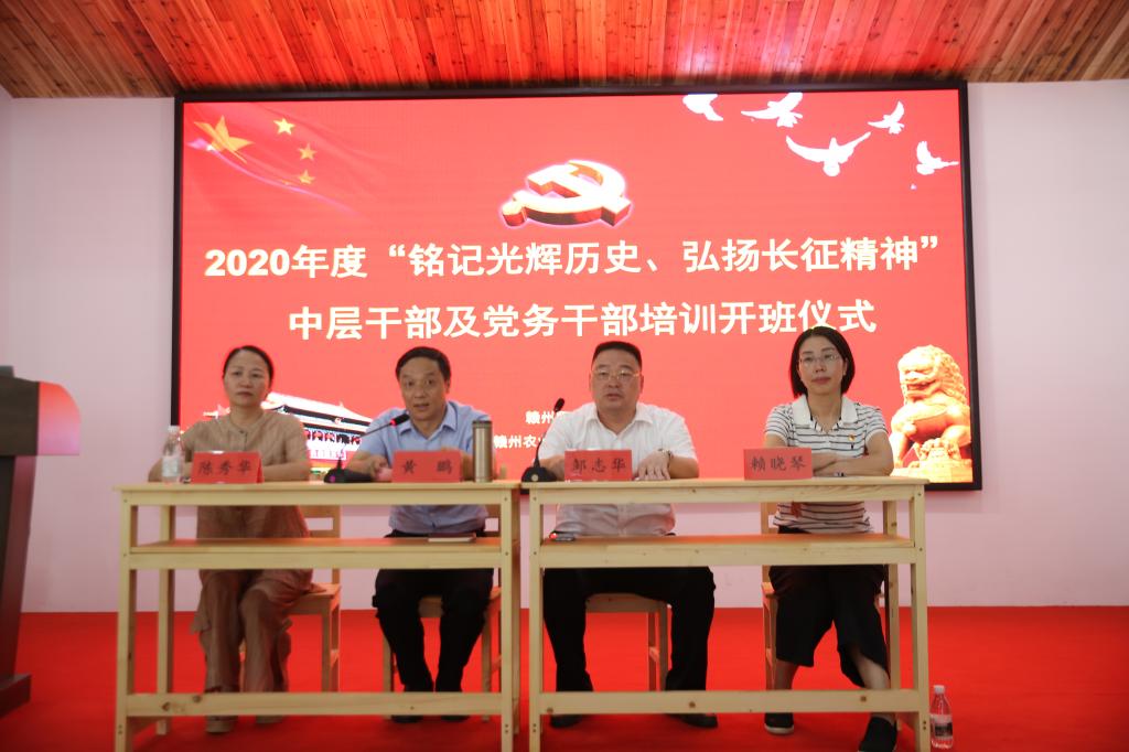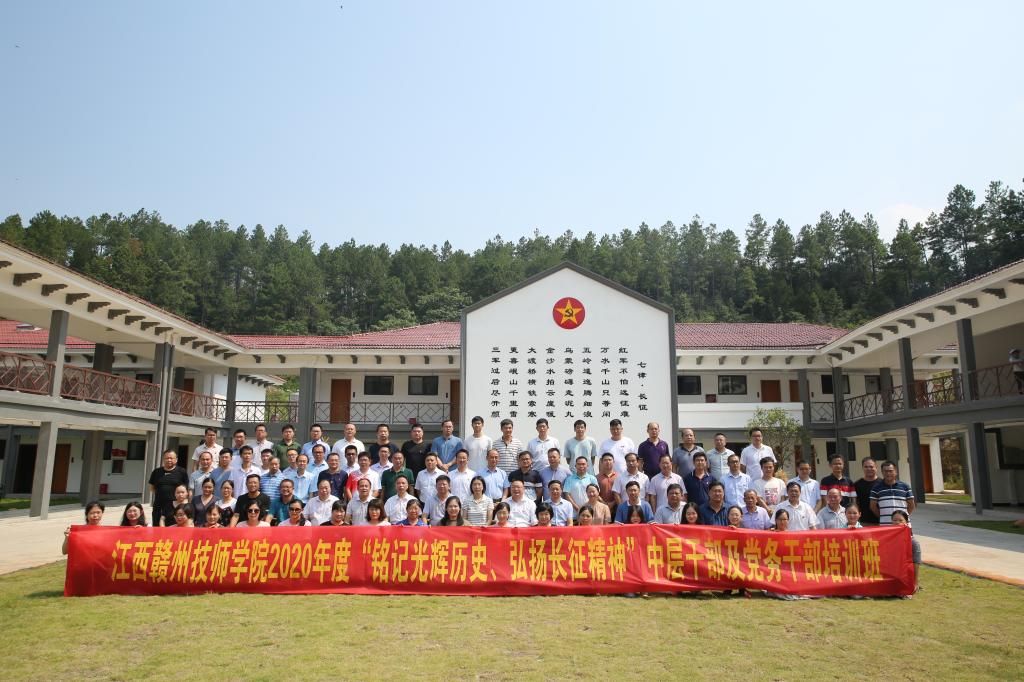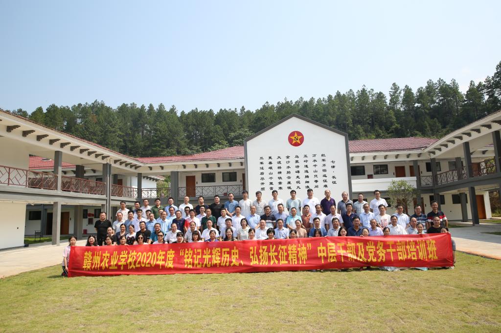 7月26日上午,德赢Vwin官方区域合作伙伴、赣州农业学校、赣州技师学院三校在于都祁隆山初心纪红培基地举办2020年度“铭记光辉历史、弘扬长征精神”中层干部及党务干部培训班开班式,德赢Vwin官方区域合作伙伴、赣州农业学校党委书记邹志华,德赢Vwin官方区域合作伙伴院长、赣州技师学院党委书记黄鹏,赣州农业学校校长赖晓琴、赣州技师学院院长陈秀华,以及三校领导班子成员、中层干部及党务干部一百余人参加了开班式。
