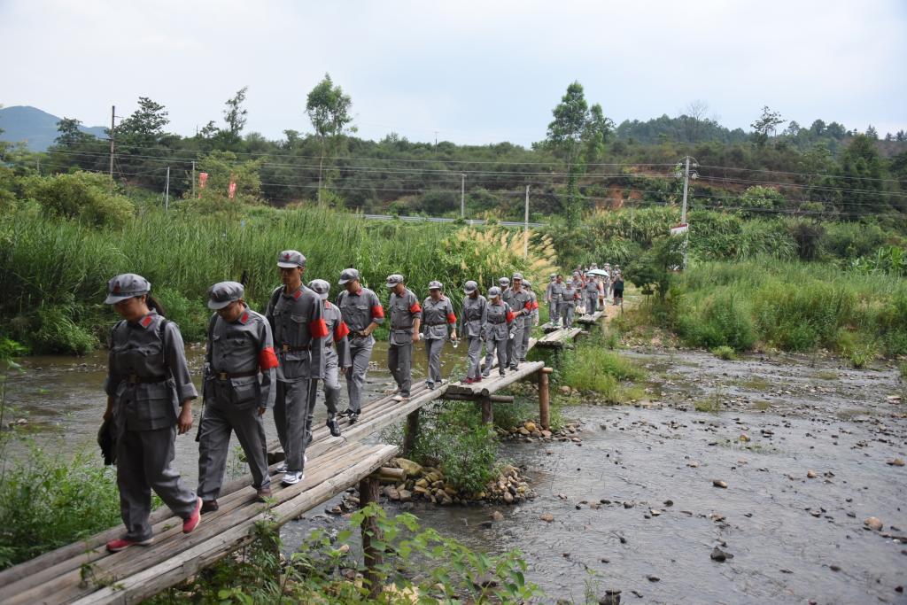 下午,为传承红色基因,弘扬长征精神,进行了实践教学——重走红军长征小道。1934年10月中旬,中央红军渡过于都河后,中共中央、中革军委以及红三军团、红五军团和红八军团从这里秘密行军,向西进发,突破第一道封锁线。长征小道全长19.34公里,风景优美,古木参天,竹海浩荡。大家统一着红军服,手握军旗、步枪、刀等,踏上红军长征的光辉足迹,体验当年红军长征的路途艰辛,领悟到不畏艰险,顽强拼搏的长征精神和苏区精神。路途中,为表达对党和国家的深情厚爱,大家还齐唱了《歌唱祖国》。