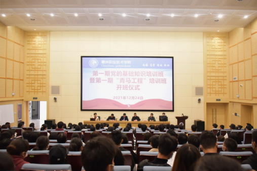 12月24日,学院在图书馆一楼学术报告厅举办第一期党的基础知识培训暨第一期“青马工程”培训班开班仪式。学院党委书记温学延出席并讲话,院领导凌远方主持开班仪式,组织人事处、机关党总支、团委等相关部门负责同志以及各系部190余名师生参加。