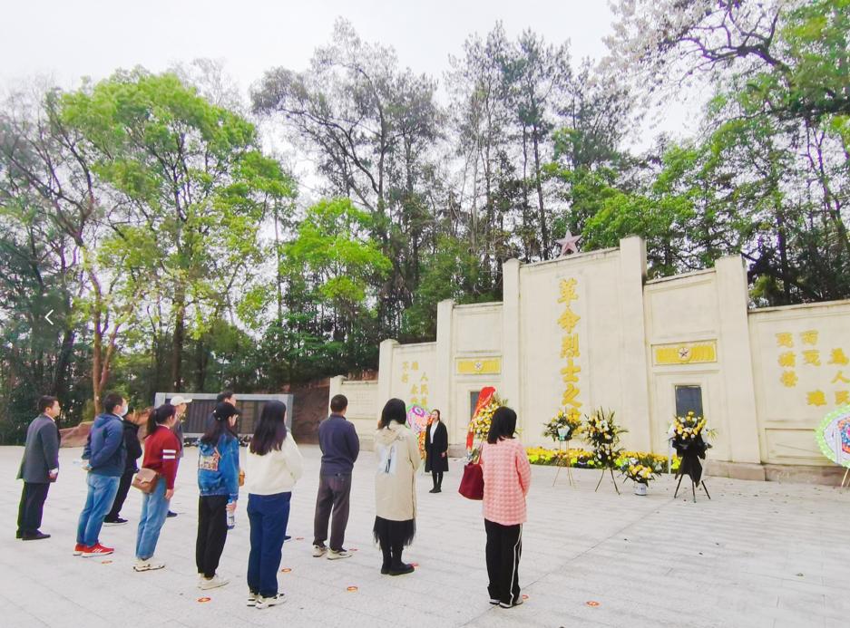 在大余县革命烈士陵园,全体党员怀着崇敬的心情,缅怀革命先烈,现场聆听微党课《生是为中国,死是为中国》,了解烈士刘伯坚的崇高气节和坚定信念以及他的革命事迹。