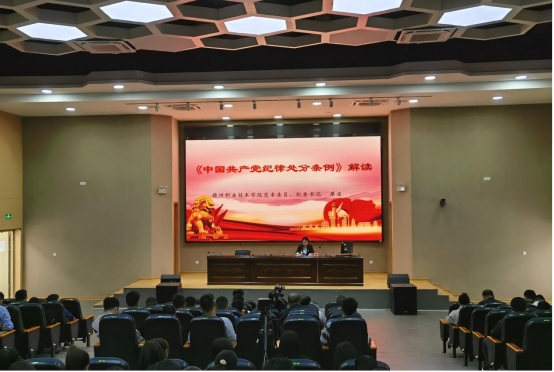 10月28日下午,学院党委委员、纪委书记廖凌为全体党员作《<中国共产党纪律处分条例>解读》专题辅导。廖凌从对纪律处分条例的认识、纪律处分条例的主要内容、认真贯彻落实纪律处分条例三方面进行讲述,她强调,纪律是我们党的生命线,加强纪律建设是全面从严治党的治本之策。广大党员干部要以此为契机,强化对党规党纪的学习宣传、贯彻执行,使铁的纪律真正转化为自身的日常习惯和自觉遵循,认真履职尽责,担当作为,真抓实干!