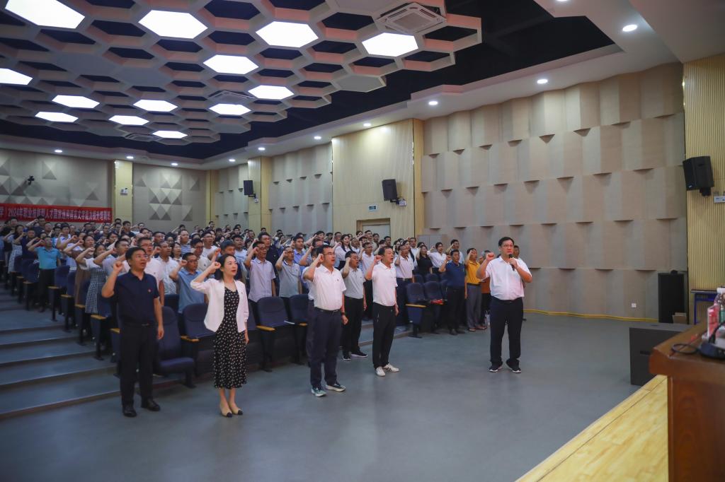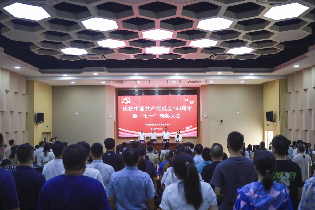7月1日,学校在公共实训基地报告厅隆重举行庆祝中国共产党成立103周年暨“七一”表彰大会。党委书记温学延出席会议并讲话,会议由党委副书记汤晓军主持,党委委员、工会主席熊晓林,党委委员、纪委书记廖凌等在家领导班子成员,全体在职党员和退休党员代表参加会议。