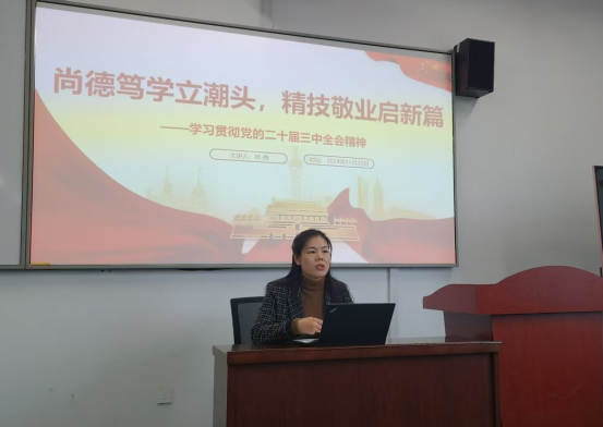 在宣讲会上,林梅以《尚德笃学立潮头,精技敬业启新篇》为主题,紧密围绕党的二十届三中全会的核心内容,从“深刻认识进一步全面深化改革的重要意义”“准确把握进一步全面深化改革的丰富内涵”以及“结合学院实际,贯彻落实全会精神”这三个方面,对全会精神进行了深入浅出的讲解。此次宣讲内容精准透彻,语言生动鲜活,既全面系统又突出重点,具有很强的政治性与理论性,为与会人员深刻领会全会精神提供了帮助。