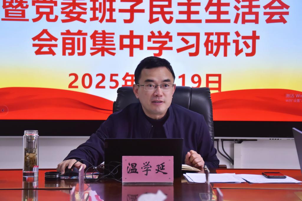 2月17日下午,学校在行知楼六楼会议室召开党委理论学习中心组学习暨党委班子民主生活会会前集中学习研讨,深入学习党的最新理论成果,为即将召开的党委班子民主生活会做好充分准备。学校党委书记温学延主持会议并讲话,学校党委班子成员、相关职能部门负责同志参加了会议。