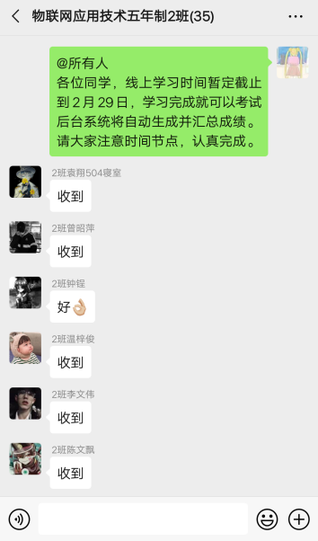 疫情能阻拦学生返校的步伐,但隔绝不了热爱与积极向上的心。为保障学生有效利用假期时间,提高学习效率,各辅导员按照学校部署组织学生利用网络学习平台在家自主学习,并切实关注班级学生,为学生答疑解惑,及时督促学生按时完成学习任务。