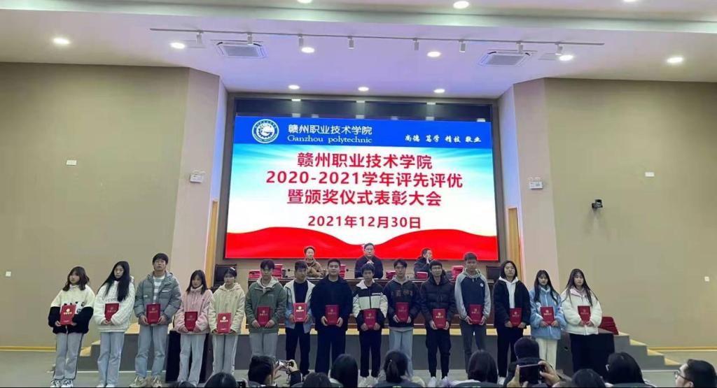 12月30日下午,学院在公共实训基地二楼学术报告厅举行2020-2021学年评先评优表彰大会。院领导汤晓军出席大会并讲话,学生工作处处长陈昌国主持大会,团委负责人肖月、学生工作处干事仲先国、全体辅导员、获奖学生以及2021级各班班长参加大会。
