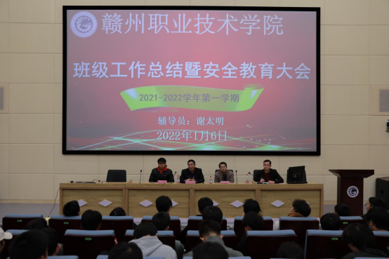 谢太明从新生入学、各班大学生参与活动及获奖情况、学习状况、班级团支部建设、大学生思想政治教育、大学生心理健康教育等方面向参会人员汇报2021-2022学年第一学期开展的学生工作情况。随后,谢太明发出期末考试动员,提醒学生考试要注意的事项,预祝全体学生考出好成绩。谢太明还对全体学生开展寒假假期安全教育,教育学生要注意交通安全、消防安全、食品安全等,全面做好疫情防控各项措施,要求学生放假后要及时回家,并让家长第一时间在家长群里向老师报平安。
