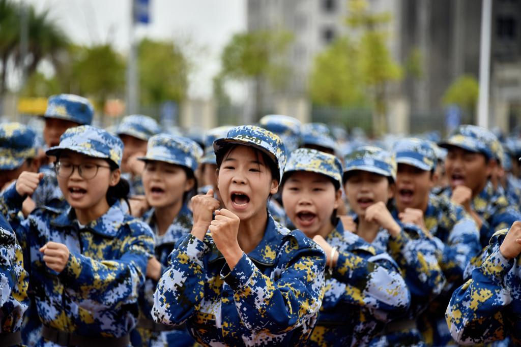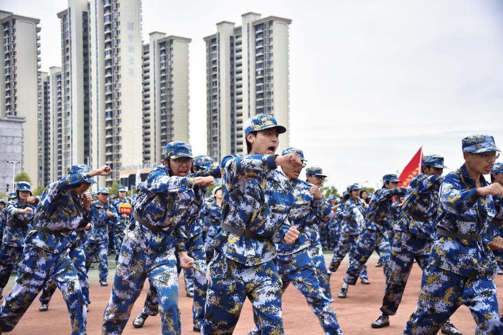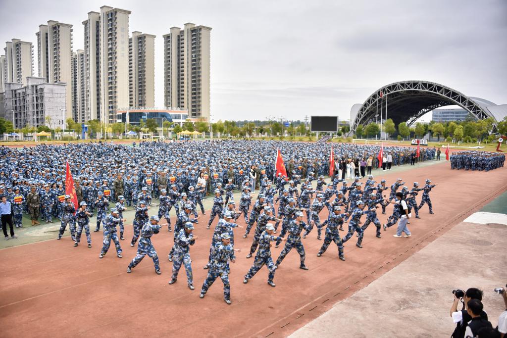 随后,由各营派出的60人方队依次进行了会操表演,展示了新生们经过14天军训后的飒爽英姿和坚定意志。他们的步伐整齐划一,口号响彻云霄,充分展现了军训的丰硕成果。