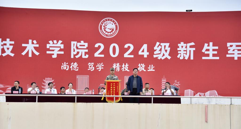 汤晓军为教官们赠送了锦旗,表达了学校对教官们辛勤付出的崇高敬意和诚挚感谢。