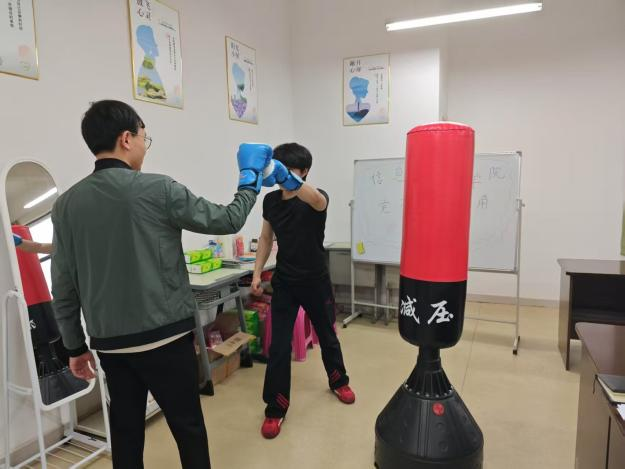 在“党群暖心角”这方温馨天地里,物资配备丰富且实用,充分考虑到了师生们的多元需求。急救箱时刻待命,里面各类应急药品、器械一应俱全,以备不时之需;葡萄糖方糖静静摆放,为在体育课后体力透支、低血糖发作的同学迅速补充能量;红糖姜茶散发着温暖的气息,在寒冷的冬日或特殊的日子里,为师生驱散寒意,带来身心的舒畅;暖宫贴被细心地收纳在专属区域,为特殊时期的女师生送去贴心呵护。除了这些,心理解压涂色本和拳击包也为大家提供了释放压力的途径。当学习和工作的压力如潮水般涌来,师生们可以拿起画笔,在色彩的世界里放松身心,或是对着拳击包尽情挥拳,将负面情绪宣泄而出,重新找回积极的状态。此外,为了更好地服务师生,其开放时间根据师生的作息规律,精心设置为工作日的三个时段,确保师生在疲惫或有需求的时刻,都能及时获得帮助与慰藉。