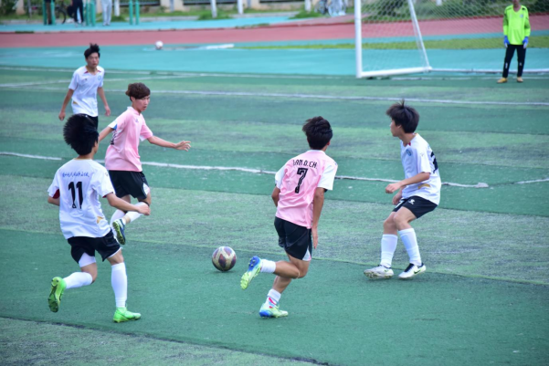 比赛开场后,校足球队队员们积极尝试掌控节奏,并凭借日常训练积累的默契,展开了多次有组织的进攻。中场球员努力梳理进攻线路,试图为前锋创造机会。比赛第20分钟,7号球员在中场得球,利用个人技术摆脱了对方防守球员,快速向前推进并送出一脚颇具威胁的传球,前腰抓住机会完成射门,率先取得进球。