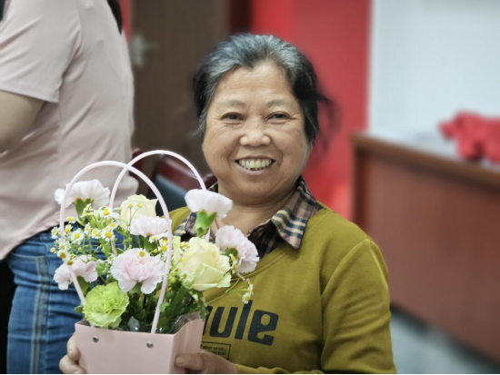 活动尾声,参加活动社区居民与师生志愿者们共同票选出了“最美花艺作品”,叶罗茜老师为获选居民送上了精心制作的花篮。一篮篮错落有致、生机盎然的插花,不仅展现了居民们的巧思,更承载着对美好生活的向往与对母爱的深情礼赞。