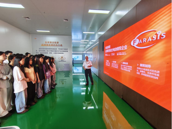 孚能科技通过详细的讲解和生动的视频展示,使得同学们对孚能科技的发展历程、核心业务、技术创新成果以及企业文化有了初步但全面的认识。工作人员着重介绍了公司在软包动力电池研发与生产领域的领先技术和创新实践,让同学们深刻感受到行业的前沿动态和科技的力量。随后,在专业人员的带领下,同学们分组有序参观了企业的生产车间。现代化的生产设备、严谨规范的生产流程以及忙碌有序的工作场景,都给同学们留下了深刻印象。在参观过程中,工作人员针对每一道生产工序进行细致讲解,耐心解答同学们提出的各种问题,从电芯制造,到Pack的组装与检测,同学们对储能材料技术在实际生产中的应用有了直观且清晰的认识,进一步加深了对专业知识的理解。