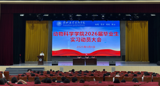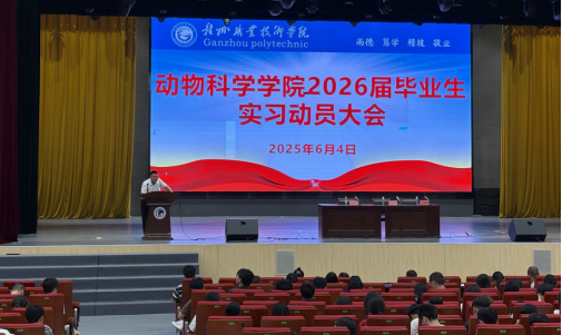 从畜禽解剖图谱上的结构标注,到实训操作台上的动物手术操作,再到即将踏入的养殖场、宠物诊疗室,2026届毕业生的每一步成长,都镌刻着学院精心搭建的成长阶梯。此次实习动员大会不仅是知识与实践的桥梁,更是学院对学子 “扶上马,送一程” 的深情护航。站在新的起点,期待毕业生们以动员大会精神为指引,将纪律意识化作行动准则,把筹备成果转化为职场底气,在岗位实习的广阔天地中躬身实践、砥砺前行,用汗水浇灌成长,以实干书写答卷,让青春在知行合一的征程中绽放璀璨光芒,为个人职业发展与社会建设交出精彩的时代答卷!