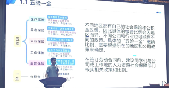 实习指导老师代表杨加明介绍了学院即将举办的实习双选会安排,督促学生精心制作简历、扎实准备面试。辅导员代表刘华清解读了实习转就业、劳动合同、五险一金、就业协议这些与大家未来职场之路紧密相关的重要板块,犹如为同学们在实习与就业的迷雾中亮起了一盏明灯。
