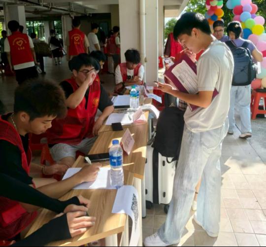 为保障9月13日至14日迎新工作高效有序,学院提前谋划、周密部署,以“静态指引+动态服务”双线并行。校园各处,清晰的路线指示牌醒目而立,身着红色马甲、背后印着金色“志愿者”字样的同学们,如秋日里的暖阳,早早守候在各个点位。他们主动上前接过新生的行李,笑着说出“我带您过去”“我来帮您提”,用最质朴的话语、最热情的行动,化解了新生初来乍到的陌生与忐忑,让离开家乡的不舍,悄然化作对大学生活的期待。