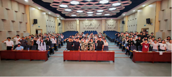 随后,全体团员肃立重温入团誓词,“为共产主义事业而奋斗”的誓言响彻报告厅,让每一位团员再次铭记初心,坚定了向党组织迈进的决心。