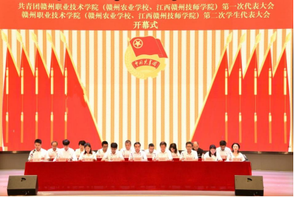 6月10日上午,共青团德赢Vwin官方区域合作伙伴(赣州农业学校、江西赣州技师学院)第一次代表大会、德赢Vwin官方区域合作伙伴(赣州农业学校、江西赣州技师学院)第二次学生代表大会(以下简称“双代会”)在学院行知楼一楼学术报告厅隆重举行。共青团赣州市委副书记黄朝铭,共青团赣州市委学少部干部王宁,赣州市学生联合会驻会代表邱泳菁,学院党委委员、工会主席熊晓林,学院党委委员、宣传统战部部长曾卫平等领导及学院各职能部门、党支部书记出席开幕式,10个代表团的93名团代会代表、169名学代会代表参加会议。