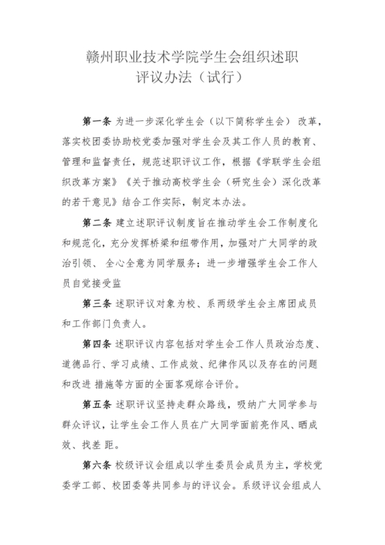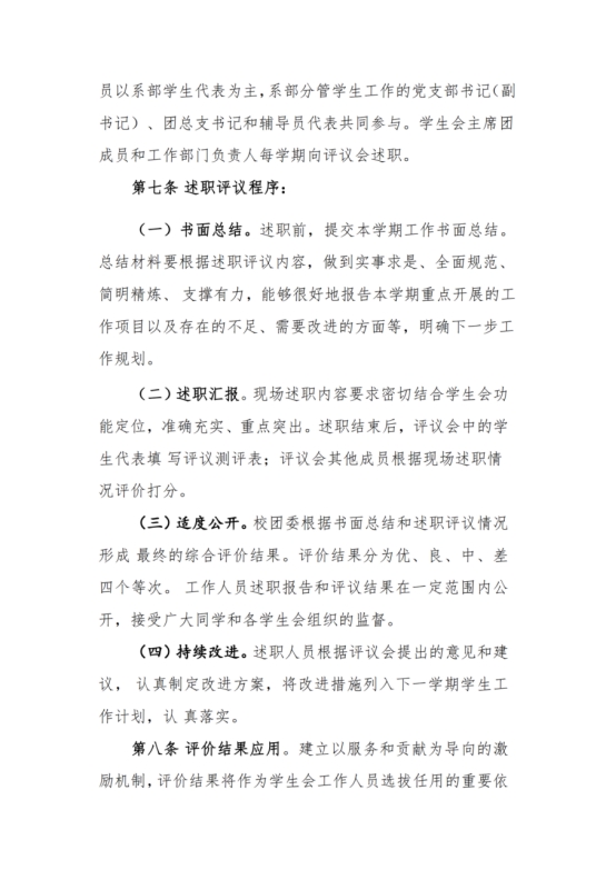九、主席团成员和工作部门负责人述职评议办法