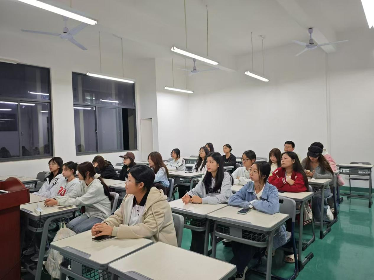为更好发挥本次红色研学活动的辐射作用,本着“学习、思考、交流、分享、成长”的理念。10月31日,现代服务学院邀请夏雨琴,在以升楼开展了一次以“青春为中国式现代化挺膺担当”为主题的红色文化分享会,旨在进一步感召时代青年,传承红色基因,赓续红色血脉。本活动由夏雨琴主持并主讲,现代服务学院青马班成员和各班团支书参加。