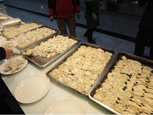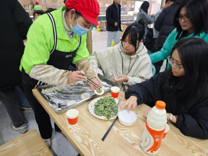 活动现场,师生们分工明确,积极参与到包饺子的环节中。饺子皮薄馅足,形状多样,老师和食堂工作人员也为学生传授包饺子技巧,大家在欢声笑语中共同完成了这一传统美食的制作。这一环节不仅锻炼了同学们的动手能力,发挥自己的创意,也体验到了包饺子的乐趣和传统文化的魅力,更让大家在共同参与中感受到家的温暖。