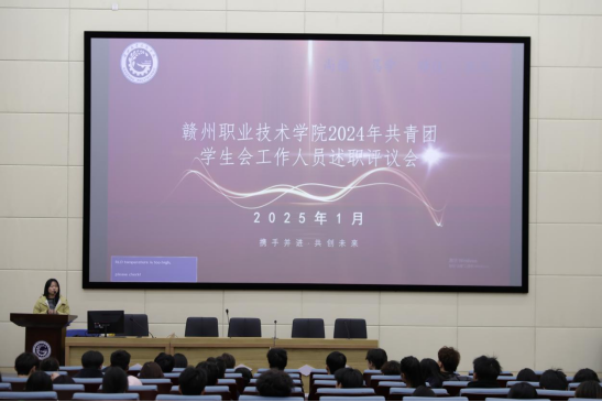 1月2日,学校团委组织开展2024—2025学年共青团、学生会工作人员述职评议会议,本次大会由团委副书记肖月主持,校团委相关教师,各二级学院团总支负责人代表、学生会指导教师代表,校团委学生会、各二级学院团总支、学生会学生工作人员代表参与本次会议,会议在图书馆报告厅开展。