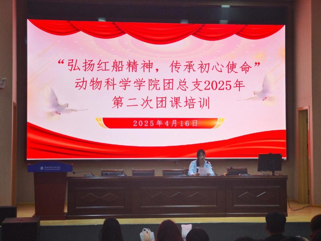 为深入贯彻落实“不忘初心、牢记使命”主题教育核心要义,切实强化青年学生的理论武装与理想信念根基,引领广大青年坚定不移听党话、跟党走,4月16日晚,动物科学学院团总支以“弘扬红船精神,传承初心使命”为主题,精心组织开展了2025年第二次团课培训,此次培训由乐晨同学主持,全体2023、2024级团员踊跃参与。