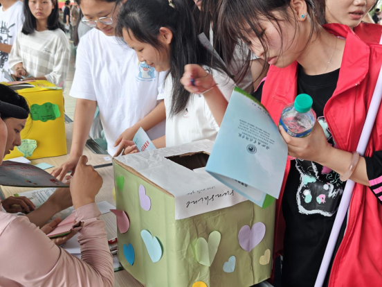 启动仪式结束后,心理游园会正式开始,校园内瞬间化作一片欢乐的海洋。本次游园会设置了10项丰富多彩的心理小游戏,采用“打卡集章换纪念品” 的形式,吸引学生们积极参与各个项目。现场气氛热烈,笑声此起彼伏,同学们在轻松愉悦的氛围中释放压力、学习心理知识、增进人际互动。活动不仅提升了学生的心理健康意识,更通过 “一院一特色” 的项目设计,展现了各学院将专业特色与心理教育深度融合的创新成果。