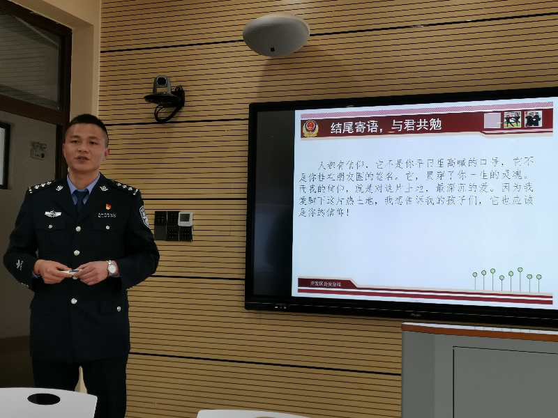 本次讲座主要从校园安全及普法、识别及预防电信诈骗、毒品的危害三个方面进行了详细的阐述。章登成向师生阐述了我国目前青少年违法犯罪的现状,“25周岁以下的人犯罪占犯罪总数的70%以上”,触目惊心的数据令人动容;分析了青少年走上违法犯罪道路的诱因,“不良的行为习惯导致了走向违法犯罪”;针对广大青少年学生的年龄特点,向大家介绍了各种毒品及其危害和电信诈骗的识别,通过各种发生在校园当中的血淋淋的案例生动告诫大家“树立正确价值观,提高自我保护意识”;最后,章登成说到“人都有信仰,它不是你平日里高喊的口号,它不是你挂在朋友圈的签名。它贯穿了你一生的灵魂。而我的信仰,就是对这片土地,最深沉的爱。因为我爱脚下这片热土地,我想告诉我的孩子们,它也应该是你的信仰!”