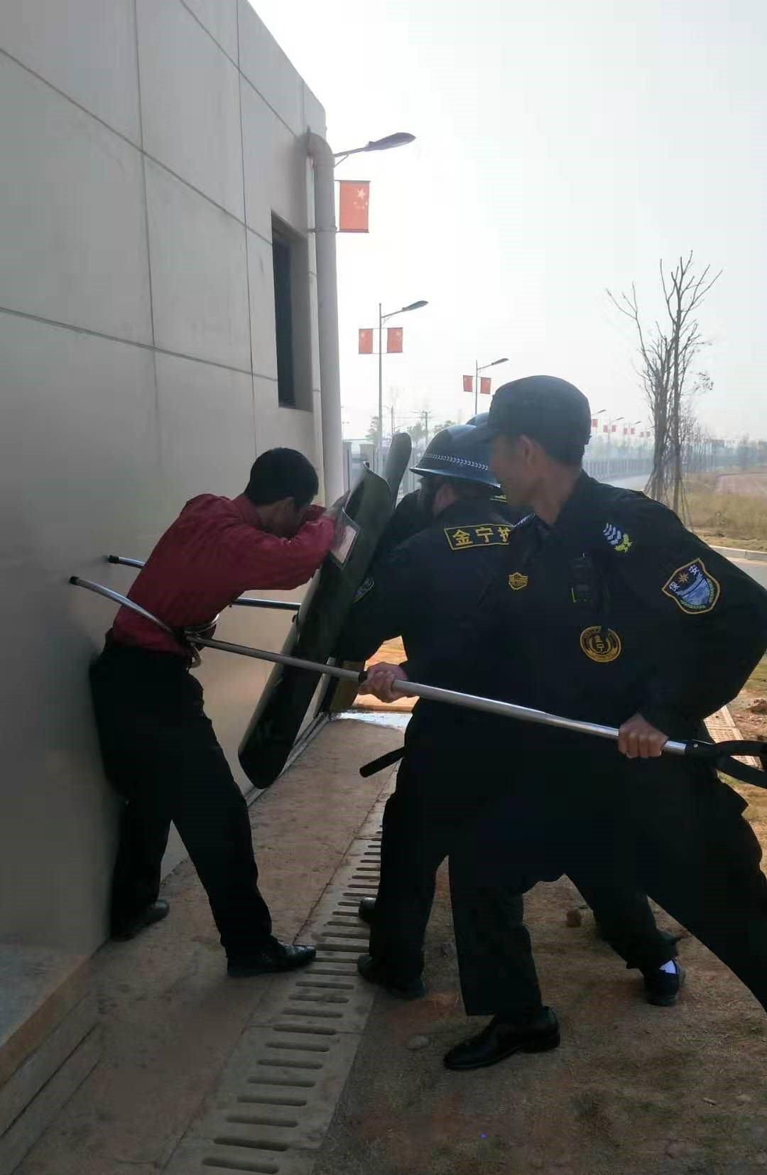 演练模拟学院受到暴恐分子冲撞校园,学院立即启动处突应急预案和突发事件处置程序,分别通知特警、民警赶往校园,安保人员全副武装、各司其职、分工协作,第一时间控制住暴恐分子,保证师生的安全。