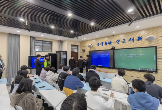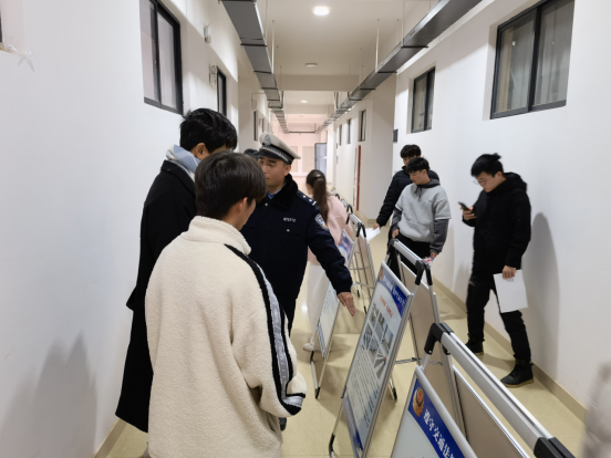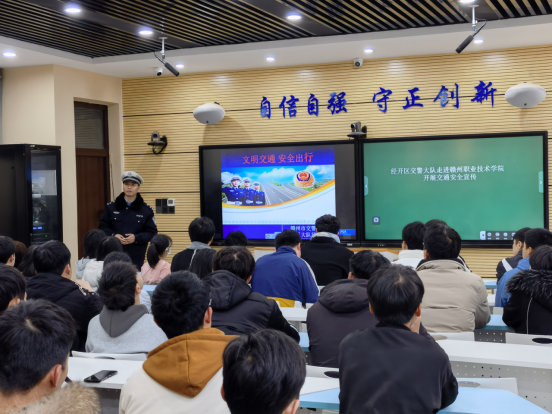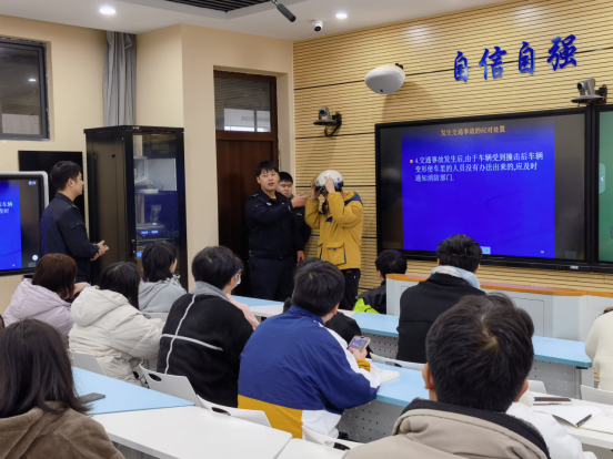 为提高学院师生的道路交通安全意识,提升学院师生自我安全防护能力,1月7日下午,经开区交警大队凤岗中队交警走进学院开展交通安全宣传活动,学院全体信息员、安全员和部分班干部参加了此次活动。