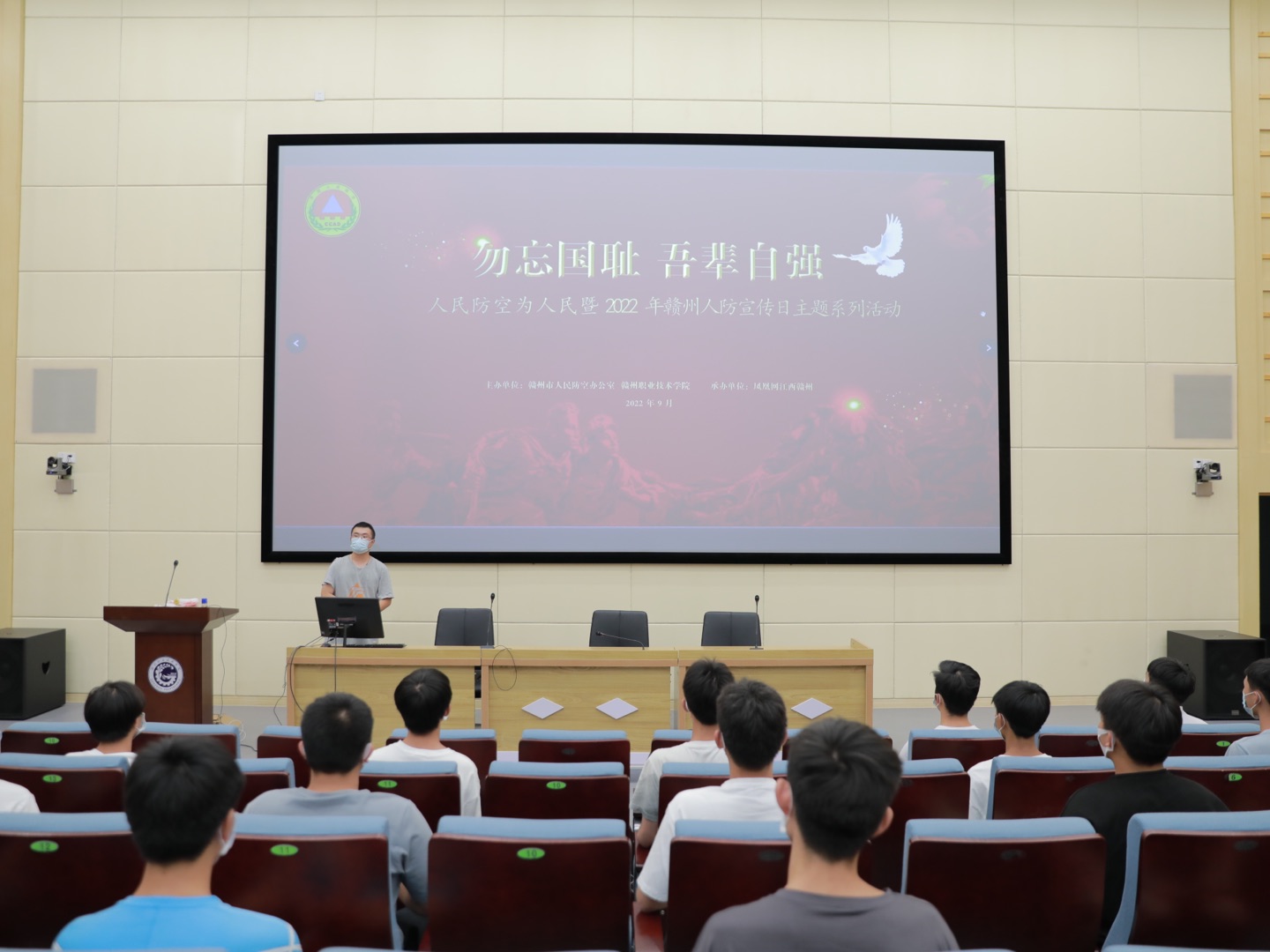 在第22个“全民国防教育日”来临之际,学院联合赣州市人民防空办公室、凤凰网江西赣州频道组织举办了“人民防空为人民暨2022年赣州人防宣传日主题系列活动”,向学院广大师生普及防空防灾知识,增进大家对人防知识的了解,增长自救互救、疏散救援知识。