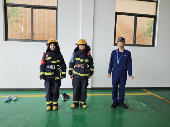 同学们观看了消防员穿戴战斗服的全过程,并尝试亲自穿上战斗服。这一过程不仅让学生们了解到消防员快速反应的必要性,也让他们体会到消防员辛苦。