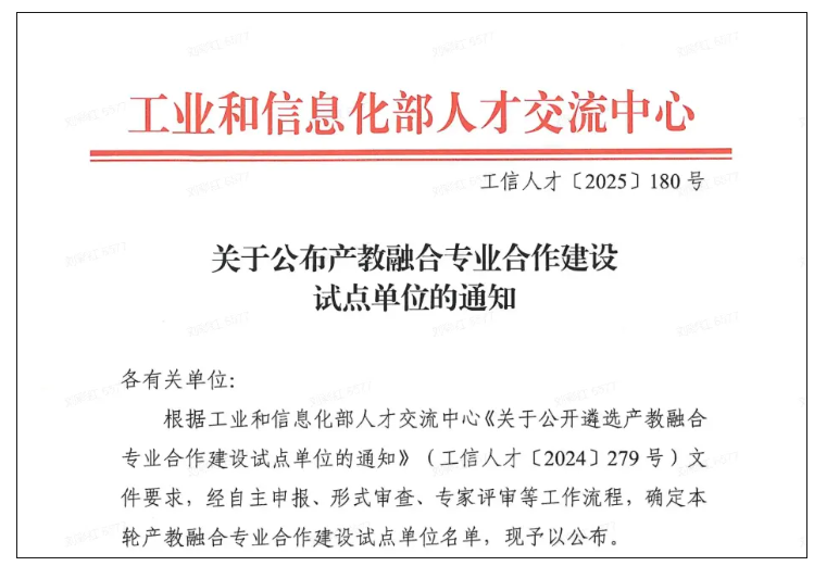 近日,工业和信息化部人才交流中心正式发布《关于公布产教融合专业合作建设试点单位的通知》,经过自主申报、形式审查、专家评审等严格流程,德赢官网信息安全技术应用、物联网应用技术两个专业成功入选本轮国家级产教融合专业合作建设试点单位名单。