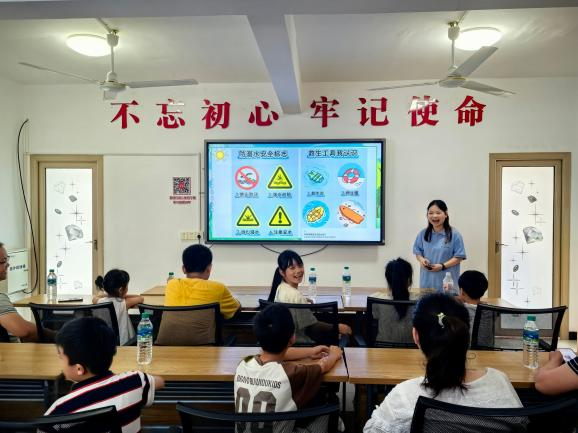 安全知识趣味扎根:队员们针对儿童群体开设防溺水与消防安全课,创新构建“知识科普+手势舞教学+手抄报创作+实操模拟”趣味链。用生动警示案例讲解防溺水与消防要点,借手势舞强化“远离危险水域”“火灾逃生技巧”等核心知识,引导孩子们用画笔绘就安全意识,并通过灭火器“提拔握压”四步实操亲身体验。十分钟内,“学安防、辨风险、善应对”的安全意识深植童心。这体现了青年智慧在公共安全教育模式创新上的探索。