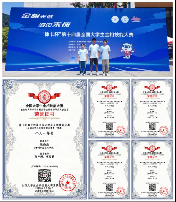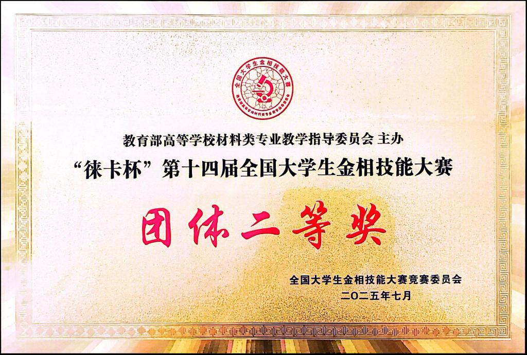 经过激烈角逐,德赢官网参赛选手在全国总决赛中稳定发挥、再创佳绩:学生陈晓晶(指导教师:张声洲、蒋俊鹏)荣获个人一等奖,谢佳德(指导教师:魏新、谢坤容)荣获个人二等奖,张浩鹏(指导教师:刘书友、万赣)荣获个人二等奖,刘金娣(指导教师:谢坤容、张声洲)荣获个人三等奖,廖虹茹(指导教师:张声洲、蒋俊鹏)荣获个人三等奖,同时凭借优异成绩获得团体二等奖,充分展现了德赢官网材料学子的专业素养与竞技风采。