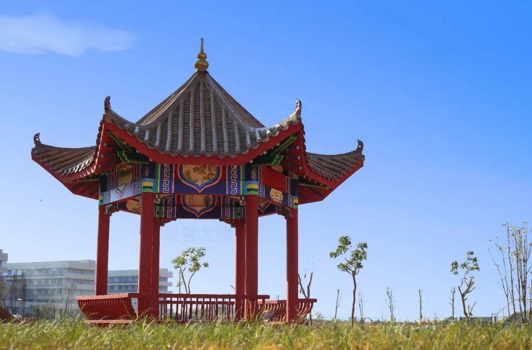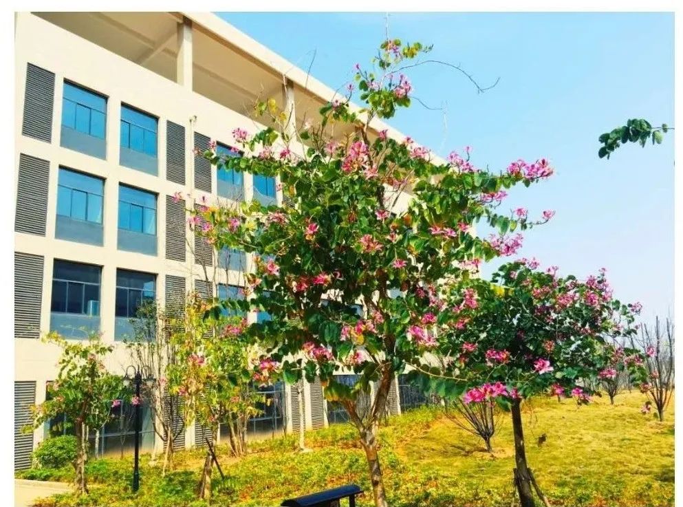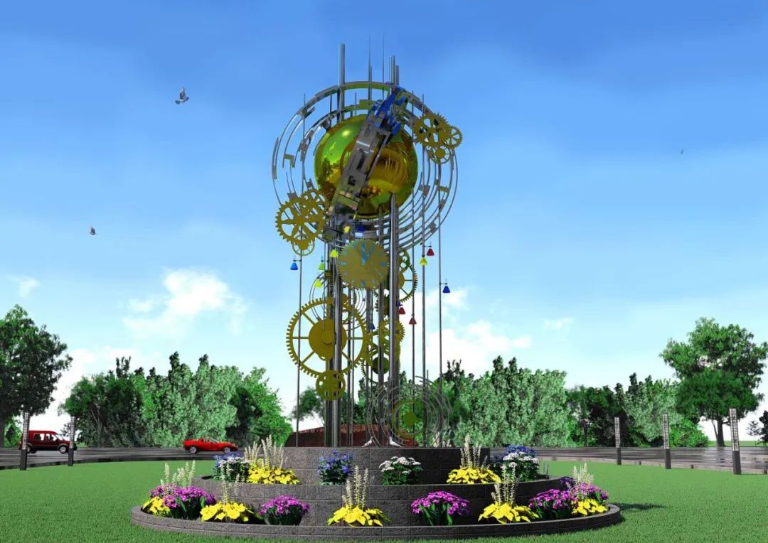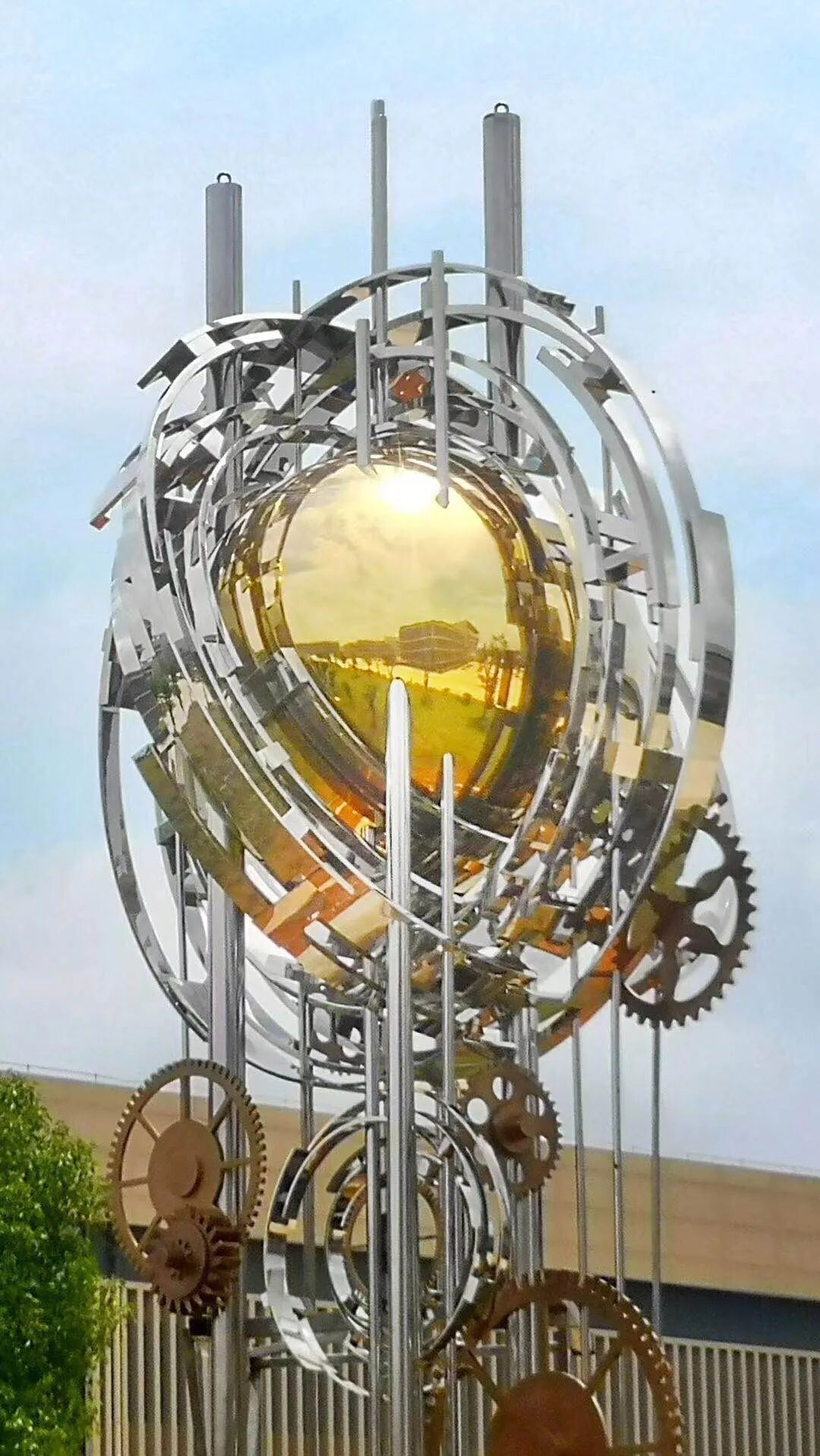再往前走,你会看到学院的标志性雕塑——赣职朝晖,它是由“齿轮、互联网、锥形烧瓶”作为主体,充分展现了“点、线、面”的完美结合,力与美的统一。