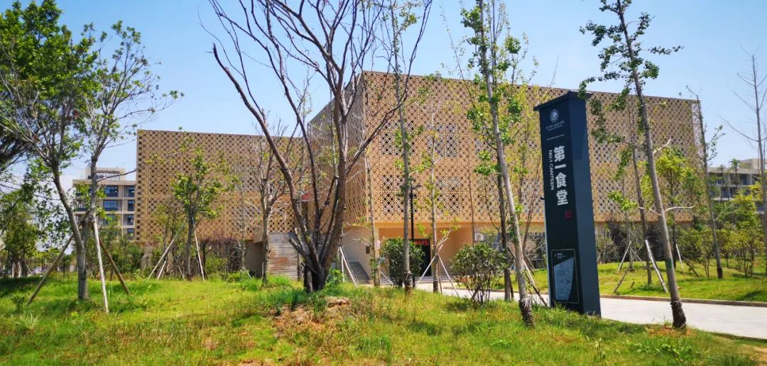 沿着行知大道往前走,你会看到两栋金色镂空大楼,这就是我们最喜爱的地方——食堂,学院食堂菜品丰富、物美价廉,各种各样的美食数不胜数,香气扑鼻,令人垂涎欲滴。